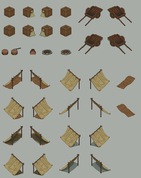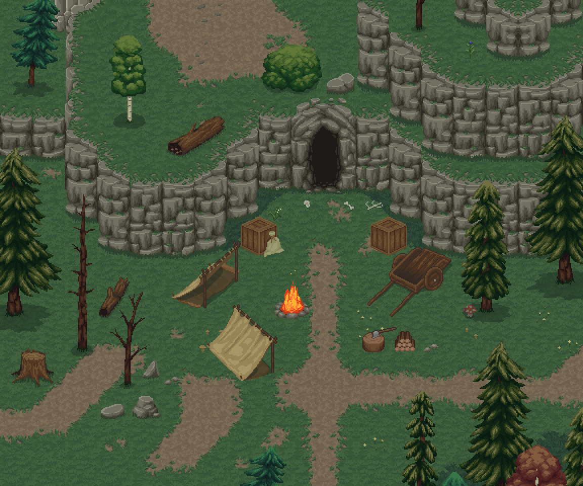 This pack only contains the camp elements, the sample screenshot was made with my pine forest tileset: